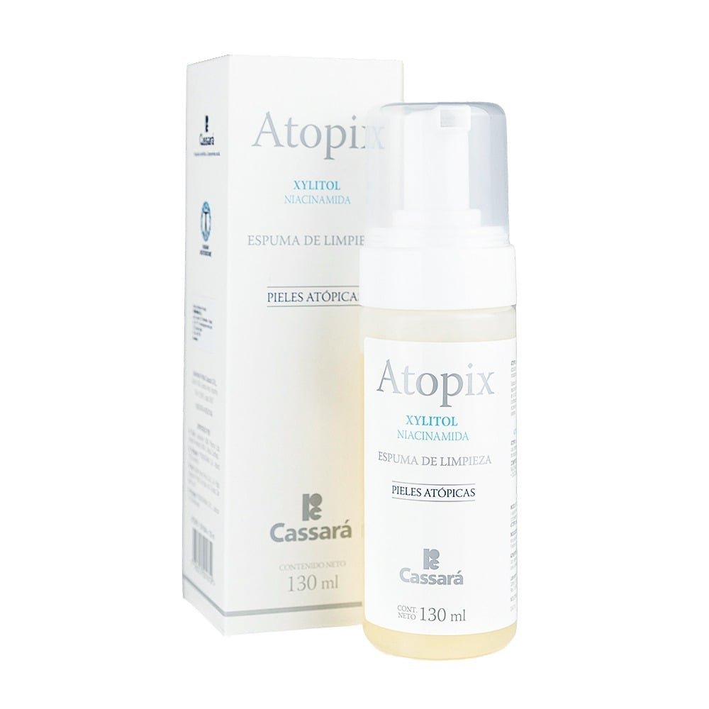 Atopix Espuma Limpieza, de 130 ml, es una solución diseñada para la higiene diaria de pieles atópicas, secas, delicadas y sensibles, tanto del cuerpo como del cuero cabelludo. Actúa como un sustituto del jabón, manteniendo la higiene sin irritar la piel. Su fórmula integra xilitol, niacinamida y glicerina, que trabajan en conjunto para proteger la barrera cutánea, hidratar y suavizar la piel. Al usar Atopix Espuma, se preserva el manto natural hidrolipídico de la piel, protegiéndola de agresiones externas.