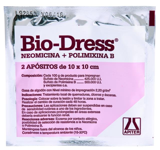 Bio-Dress Aposito, fabricado por el Laboratorio Apiter, incluye 2 trozos de 10 x 10 cm cada uno. Es un producto tópico cutáneo con acción antimicrobiana y antiséptica, asociado a vitaminas o emolientes, sin contenido de corticoides. Este producto se presenta como una alternativa efectiva en el tratamiento de lesiones cutáneas, destacando su acción profiláctica contra infecciones microbianas. Para mayor información, se recomienda consultar también los productos asociados de antimicóticos y corticoides.