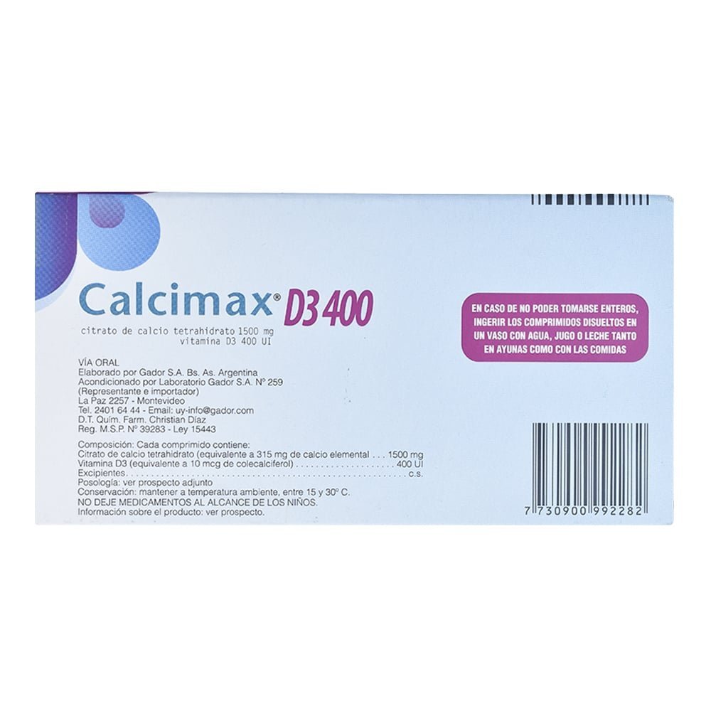 Calcimax D3 400 mg 30 comprimidos es un suplemento nutricional que integra citrato de calcio ultradenso (1500 mg, equivalente a 315 mg de calcio elemental) y vitamina D3 (400 UI). Presentado en comprimidos recubiertos dispersables, está concebido para optimizar la absorción de calcio y vitamina D, elementos clave para el mantenimiento de la salud ósea. Este producto es especialmente indicado para personas que presentan deficiencias dietéticas o que tienen necesidades nutricionales aumentadas.