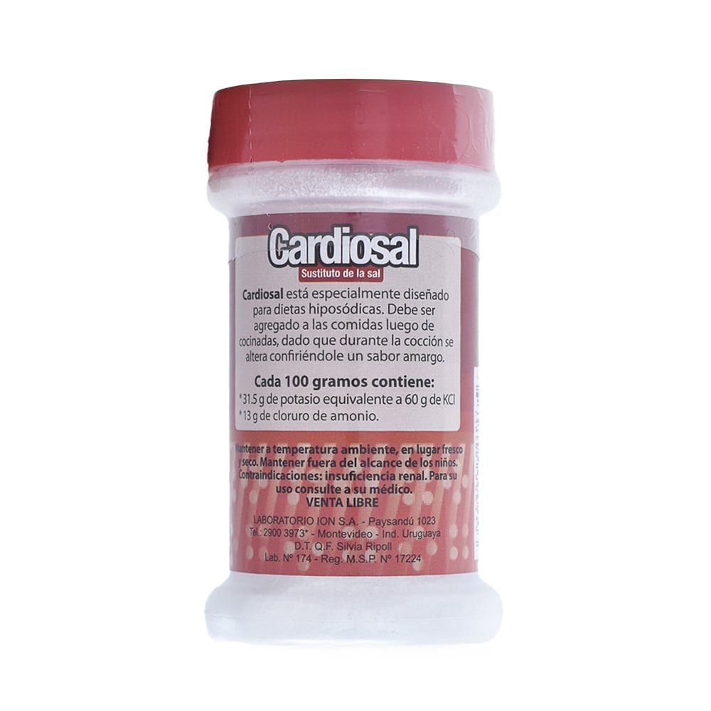 Cardiosal 50 gr es un preparado sustitutivo de la sal de mesa que contiene sales de potasio o cloruro de sodio en concentración baja. Este producto ayuda a reducir la ingesta de sodio, contribuyendo así a la restricción de su consumo diario.