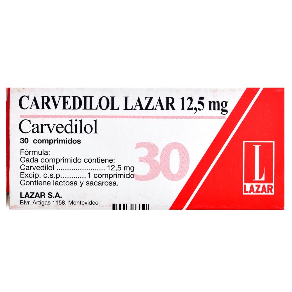 Carvedilol Ion 12.5 mg, 30 comprimidos, es un betabloqueante adrenergico no selectivo que actúa como antagonista de los receptores beta 1, beta 2 y alfa 1, presentando además un efecto vasodilatador mediado por el bloqueo de los receptores alfa 1. Tiene un efecto estabilizante de membrana y carece de actividad simpática intrínseca. Su metabolismo se realiza principalmente en el hígado por las enzimas CYP2D6 y CYP2C9, lo que conlleva una variabilidad funcional debido a polimorfismos genéticos, y su excreción es fundamentalmente biliar.