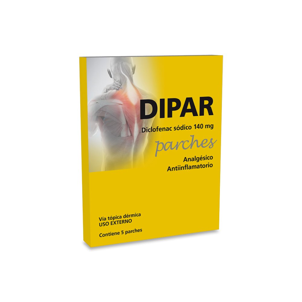 Dipar 5 Parches es un tratamiento tópico a base de diclofenac sódico indicado para aliviar el dolor y la inflamación muscular y osteoarticular derivadas de afecciones reumáticas o traumáticas. Se aplica sobre piel sana en la zona afectada, ofreciendo un alivio localizado. No debe emplearse en áreas con piel lesionada ni cubrirse inmediatamente tras su aplicación.