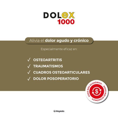Dolex 1000 mg 24 comprimidos es un analgesico y antipiretico formulado con paracetamol, diseñado para proporcionar alivio del dolor leve a moderado y la reducción de la fiebre. Es un producto seguro y eficaz en múltiples situaciones clínicas, aunque debe emplearse con precaución en pacientes afectados de insuficiencia hepática o renal, o en aquellos con riesgo de hepatotoxicidad. Es fundamental no exceder la dosis diaria recomendada, ya que superarla puede provocar complicaciones graves.