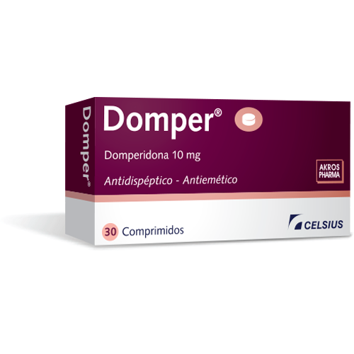 Domper 30 comprimidos es un antiemético que incluye como principio activo domperidona (10 mg). Este compuesto actúa como antagonista de los receptores dopaminérgicos D2 localizados en la zona gatillo del vómito, y aunque ejerce un efecto procinético moderado, presenta una escasa acción sobre la motilidad gastrointestinal. Su metabolismo se lleva a cabo en el hígado mediante la enzima CYP3A4.