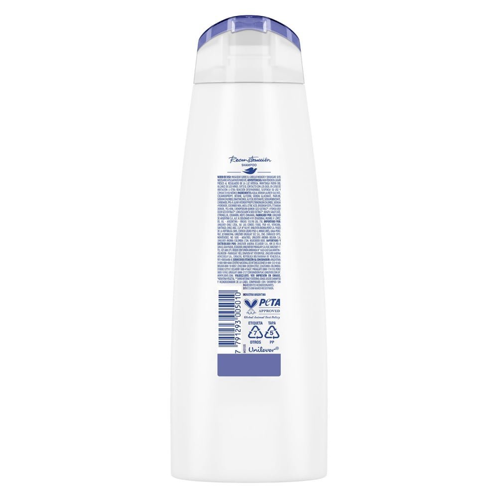 Dove Shampoo Reconstrucción Completa, de 40.000 ml, nutre y repara la apariencia del cabello dañado, proporcionando una protección efectiva contra el quiebre, el frizz y el pelo seco, dejando el cabello saludable y suave.