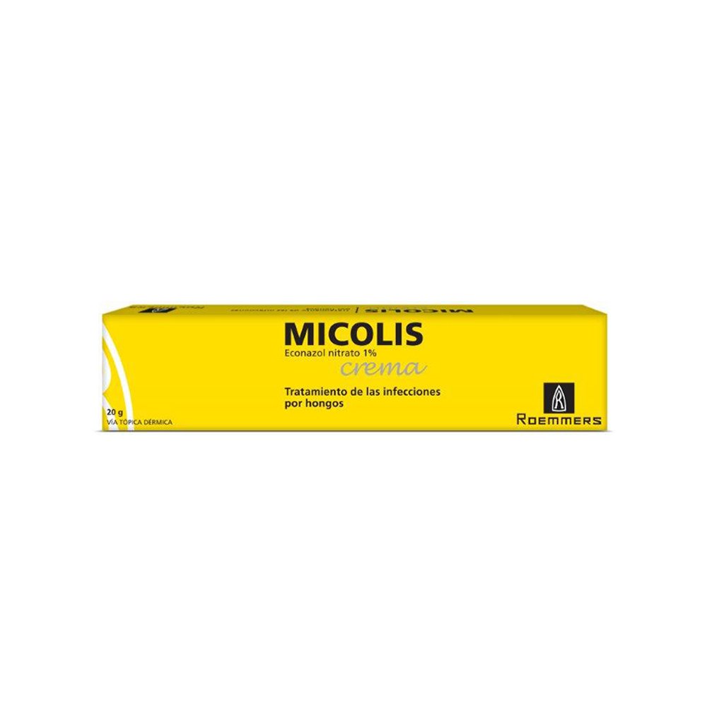 Micolis Crema 20 gr es un tratamiento antimicotico que contiene econazol al 1 g/100 g, un derivado imidazolico de amplio espectro. Este medicamento actúa como fungistático, inhibiendo la síntesis de ergosterol en la membrana celular de los hongos, lo que altera su permeabilidad y bloquea el crecimiento y la replicación del hongo. Es eficaz en el tratamiento de diversas infecciones fungicas superficiales, como tinea pedis, tinea cruris, tinea corporis, pitiriasis versicolor y candidiasis cutánea.