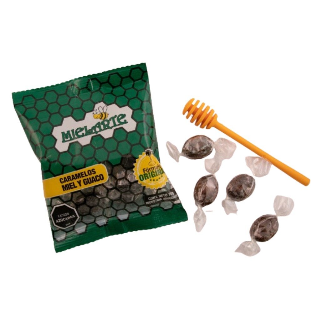 Los caramelos Mielarte Miel y Guaco de 70 gr combinan la suavidad de la miel con las propiedades naturales del guaco, ofreciendo una fórmula tradicional diseñada para suavizar la garganta. Con sabor dulce y textura firme, estos caramelos uruguayos proporcionan una experiencia reconfortante en cada masticado.