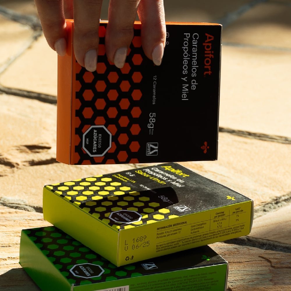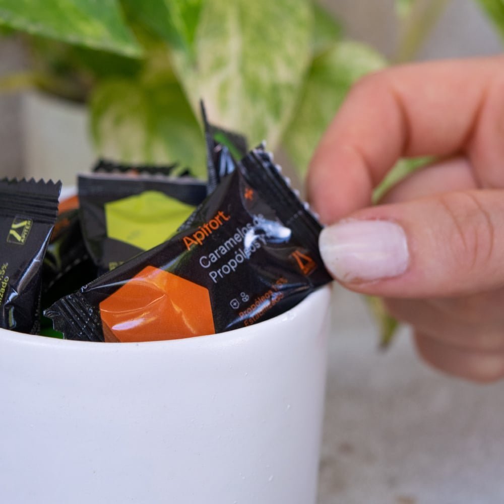 Mielarte Caramelos de Miel y Propóleo de 70 gr son dulces elaborados con propóleo estabilizado al 1,5%, concebidos para brindar alivio natural en la garganta. Gracias a su sabor tradicional, estos caramelos ayudan a suavizar la irritación y a combatir síntomas relacionados con resfriados y afecciones respiratorias. Disponibles en una caja de 12 unidades, son fáciles de transportar y consumir, ofreciendo un efecto reconfortante en cualquier momento.