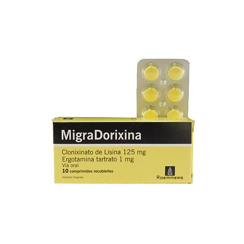 Migradorixina 125+1 mg, compuesta por clonixinato de lisina (125 mg) y ergotamina (1 mg), se emplea para tratar las migrañas en sus primeras fases de crisis. Ejerce acción vasoconstrictora y presenta efectos complejos sobre el sistema nervioso central. Su administración debe realizarse con precaución debido al riesgo de efectos secundarios graves y posibilidad de dependencia.