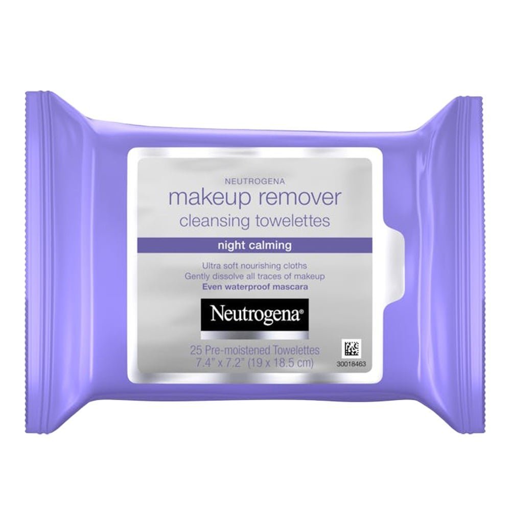 Las toallitas desmaquillantes Neutrogena Night Calming son tu compañero ideal para cerrar el día, eliminan suavemente el maquillaje y limpian la piel con una fragancia que la prepara para un descanso reparador.
