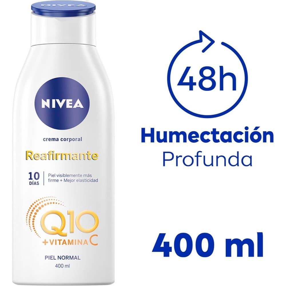 La Crema Corporal Nivea Reafirmante Q10 Plus está diseñada para mejorar la firmeza y elasticidad de la piel, ayudando a lograr un aspecto más tonificado con el uso continuo. Su fórmula combina Coenzima Q10, un componente presente de forma natural en la piel, y Vitamina C, que contribuyen a hidratar profundamente y dejar una sensación de suavidad duradera. Su textura cremosa y ligera se absorbe con facilidad, siendo ideal para el uso diario en todo tipo de piel. Con el uso regular, ayuda a mejorar la textura cutánea, dejándola más uniforme, lisa y saludable. Es apta para todas las edades y perfecta para el cuidado corporal, aportando hidratación y una apariencia visiblemente más firme.