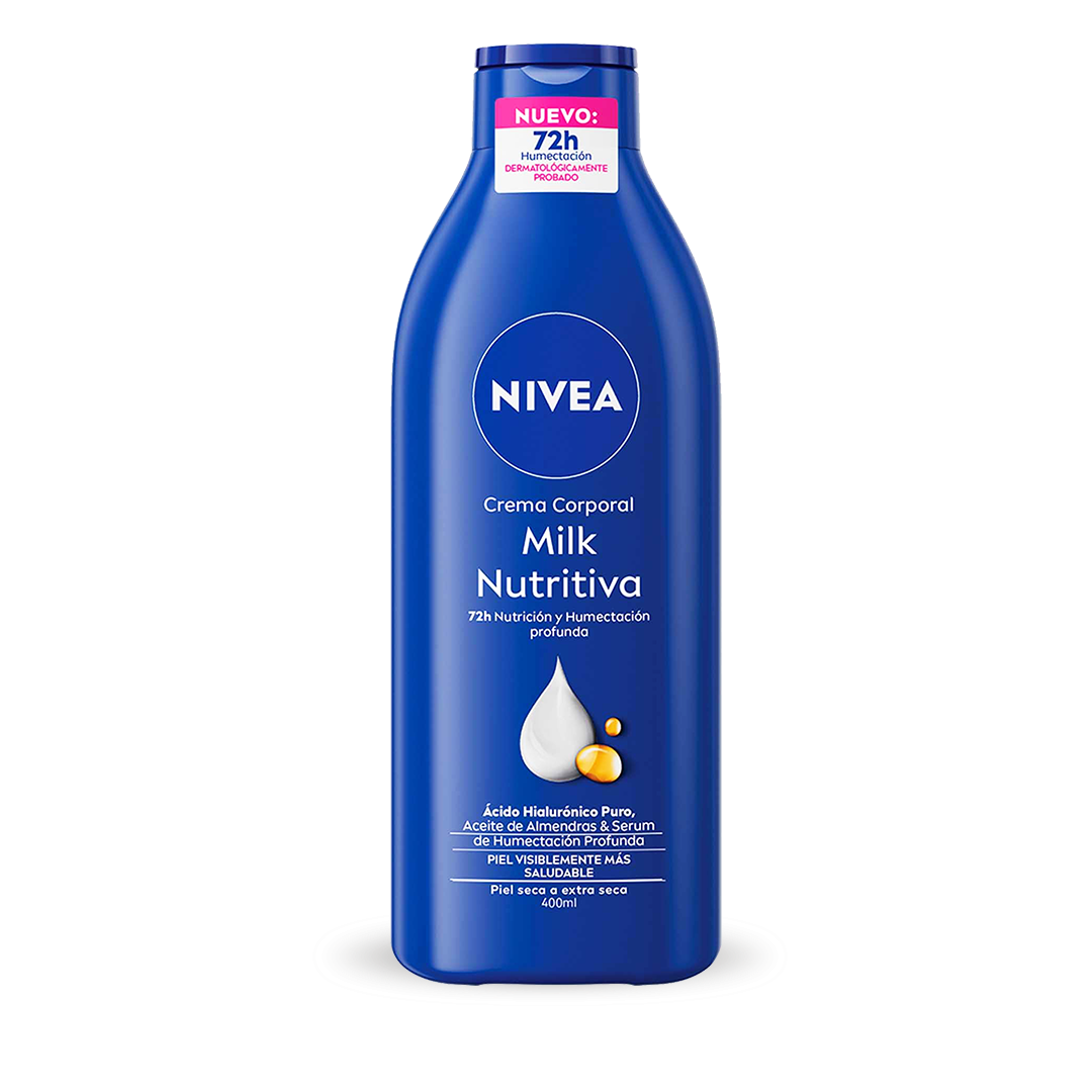 La crema corporal Nivea Soft Milk Piel Seca 400 ml es una hidratante intensiva diseñada para piel seca, enriquecida con el exclusivo Serum Humectación Profunda y karite, que proporciona una hidratación profunda y duradera de hasta 48 horas, mejorando así la suavidad y la apariencia de la piel.