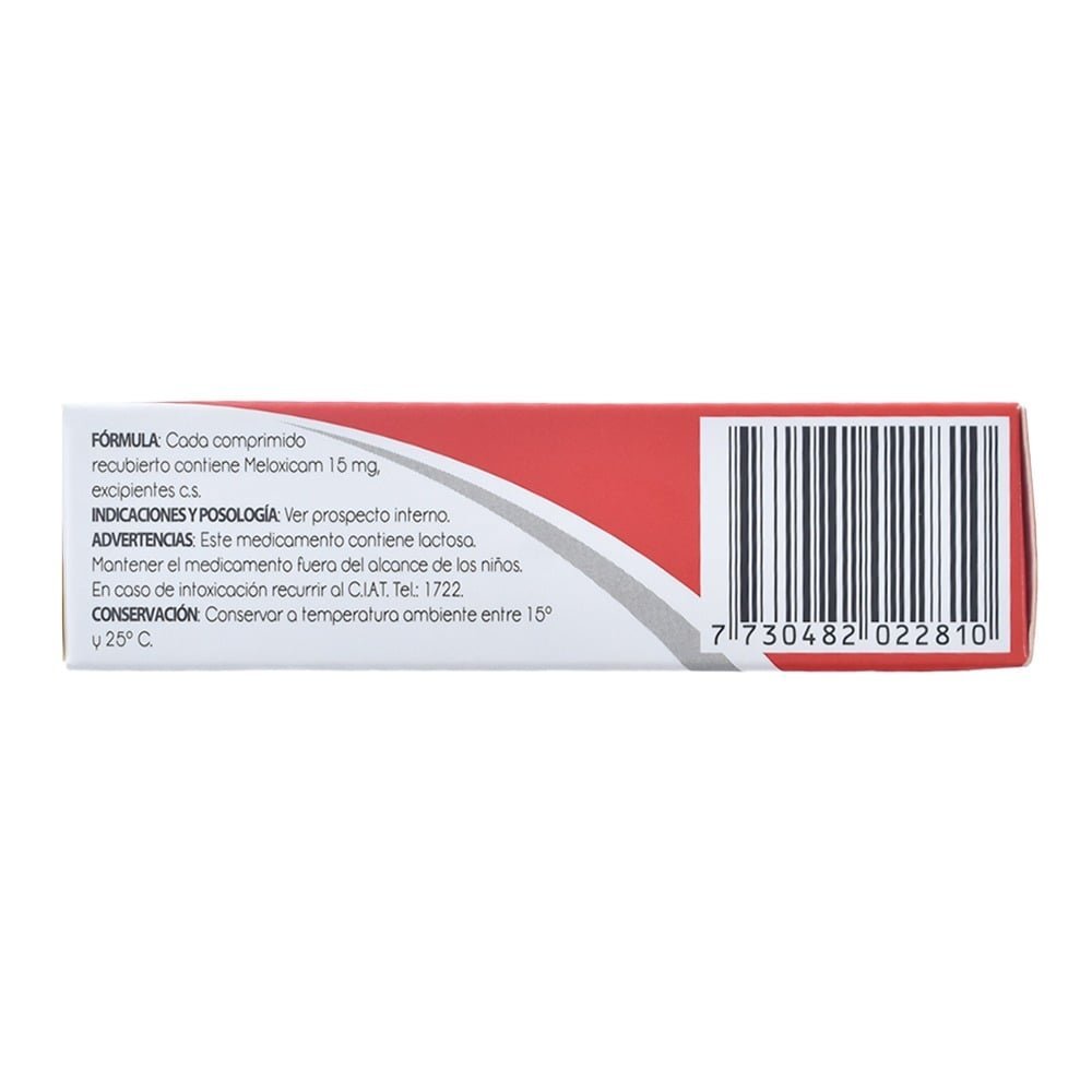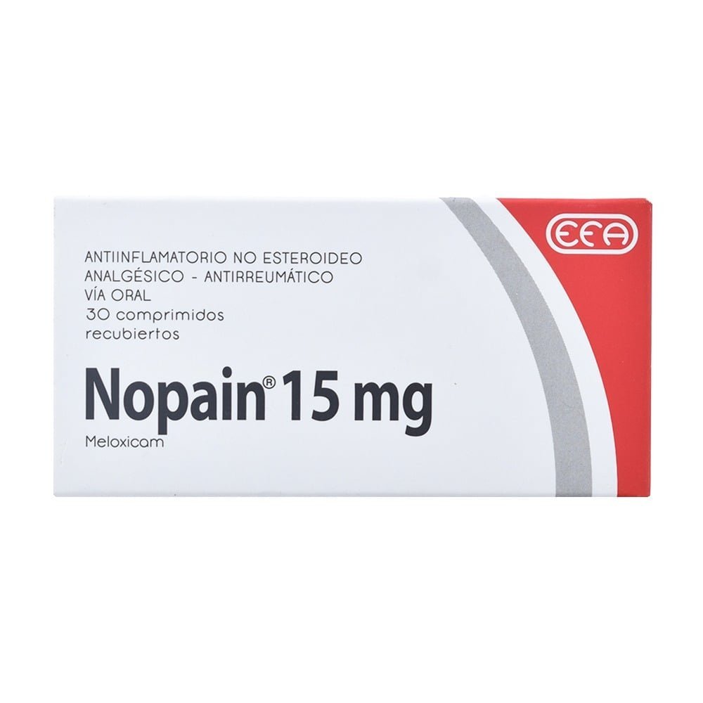 Nopain 15 mg 30 comprimidos incluye meloxicam, un antiinflamatorio y analgésico empleado para aliviar el dolor leve a moderado así como los procesos inflamatorios asociados a condiciones como artritis, artrosis y dismenorrea. Este producto es especialmente indicado para reducir el malestar en patologías osteoarticulares. Debe ser prescrito por un médico y está disponible para retiro o entrega en todo Uruguay.