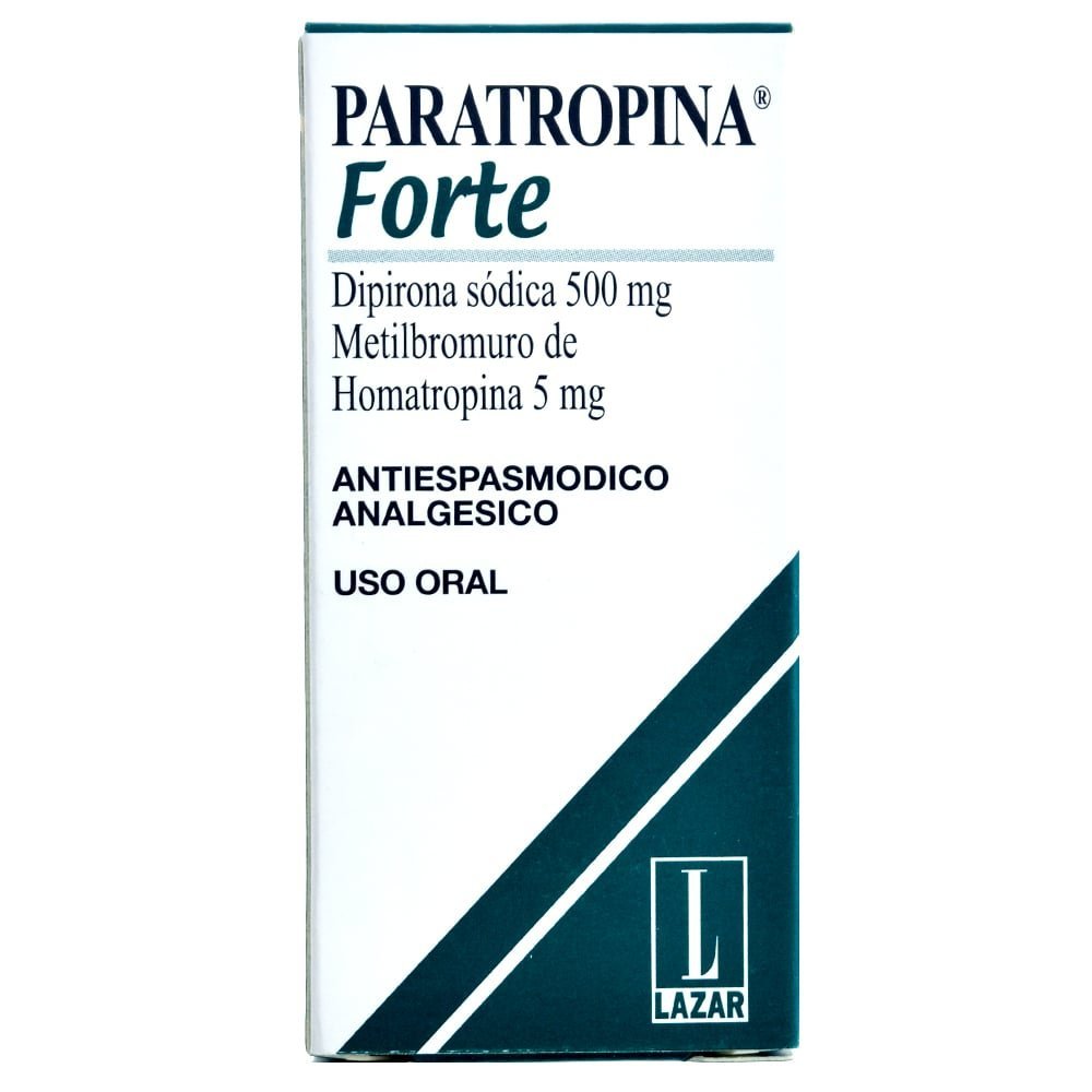 Paratropina Forte 20 comprimidos es un medicamento que contiene metilbromuro de homatropina (5 mg) asociado con dipirona (50.000 mg) en forma de tabletas. Esta combinación de un antiespasmodico y un analgesico está indicada para el tratamiento de dispepsias y disquinesias gastrointestinales dolorosas, ofreciendo alivio en episodios espasmodicos del tracto gastrointestinal, biliar o urogenital, en los que el componente doloroso es el predominante.