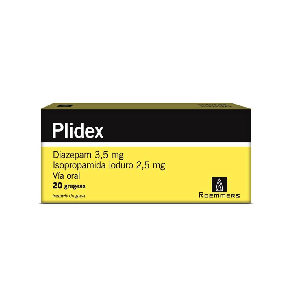 Plidex 20 grageas es una combinación de isopropamida y diazepam indicada para el tratamiento de espasmos y colicos. Se recomienda ejercer precaución en el uso de dosis repetidas y se debe tener en cuenta su potencial para enmascarar condiciones abdominales agudas.