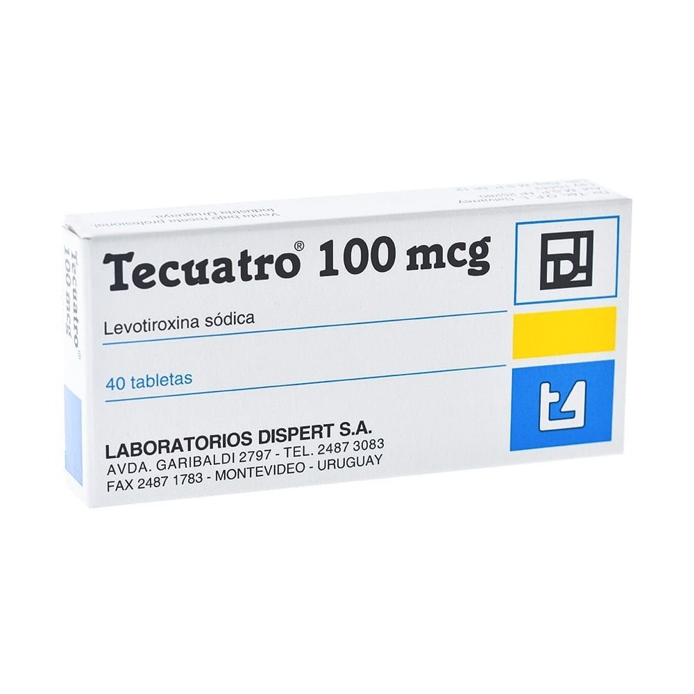 Tecuatro 100 mcg 40 comprimidos es un fármaco basado en levotiroxina sodica, formulado para reemplazar la hormona tiroidea en individuos afectados por hipotiroidismo o bocio. Este medicamento, libre de lactosa y sin gluten, se transforma en tri-yodotironina (T3) dentro del organismo, contribuyendo a la estabilización de los niveles hormonales mediante una dosis diaria. Está indicado para múltiples condiciones relacionadas con el sistema tiroideo, aunque debe administrarse con precaución en pacientes con enfermedades cardíacas o alergias al iodo.