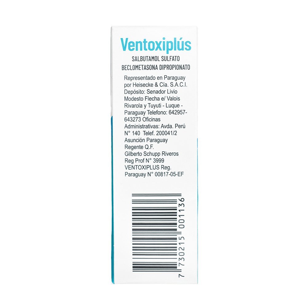Ventoxiplus aerosol 200 dosis es un producto inhalatorio que combina beclometasona, un corticoide, con salbutamol, un broncodilatador de acción corta y de clase beta-2 adrenérgico. El efecto de salbutamol dura entre 4 y 6 horas.